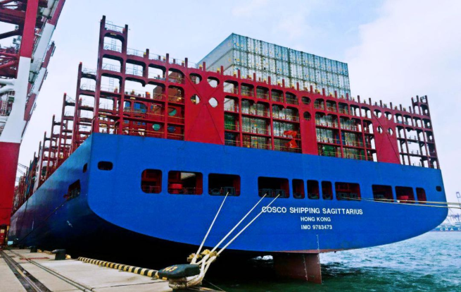 此次在前灣聯(lián)合集裝箱碼頭接用智光岸電系統(tǒng)的船舶,是由中國船舶工業(yè)集團所屬中遠海運集裝箱運輸有限公司建造的20000TEU級超大型集裝箱船舶“中遠海運人馬座輪”。該船總長399.8米,型寬58.6米,設(shè)計航速22.5海里/小時,最大載重量20萬噸。甲板面積接近4個標準足球場,是中遠的20000標廂星座級集裝箱船,排水量可超過兩條遼寧號艦空母艦。